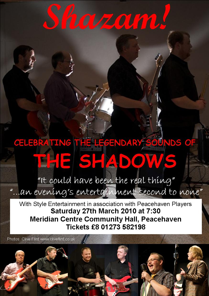 Incidentally, I noticed on the Eastbourne Theatres website that a band called 'The Fabulous Shadows' are playing at the Winter Gardens on 25th March. Anybody here involved with this or know who they are? I can't find any references on the net apart from ones that take you back to the Eastbourne Theatres site.