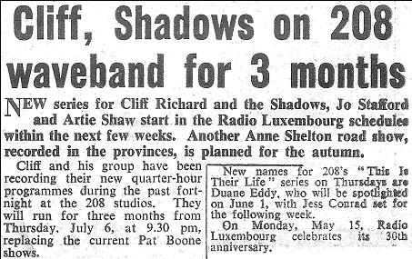 If only those recordings, or the original acetates, could one day be made available for people to hear the Luxembourg broadcasts as they were originally made. The crackly, fading amateur tapes that are in circulation give a tantalizing glimpse of some of the Shadows best work.