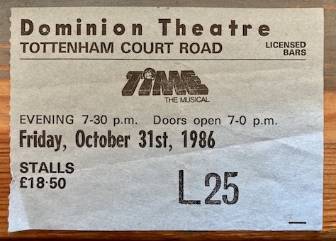 I saw "Time" at the Dominion Theatre, London, on October 31, 1986.