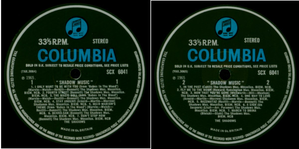 The first pressing of the stereo version of "Shadow Music" had 1965 on both labels: