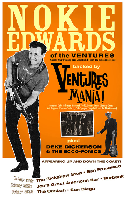 Subject: Don't Miss! NOKIE EDWARDS of the VENTURES w/ Deke Dickerson this weekend! may 21, 22, 23