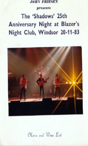 Shazam, Foottapper, Theme for young Lovers, Time is Tight, Shaddogie, Move It, The Day I Met Marie, Summer Holiday, The Young Ones, Atlantis, Equinox part 5, Chariots of Fire, Lucille, Rip It Up, Blue Suede Shoes, Walk Don't Run, Memory, Frightened City, Wonderful Land, Theme From Local Hero, Rise and Fall Flingelbunt, You were Always on My Mind, Classical Gas, All I have to Do Is Dream, Little B, Don't Cry For Me Argentina, Riders in The Sky, Apache And FBI
