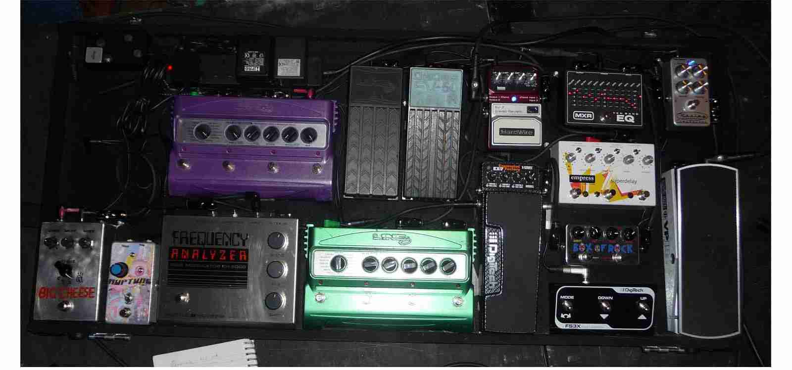 Having bumped into Maurice at the NIA, when we went to see the absolutely stunning Cliff and The Shadows performance, I was reminded of BungleFlint's usage of a large collection of footpedals mounted on a board. Both Bruce and Hank also use a collection in the current tour.