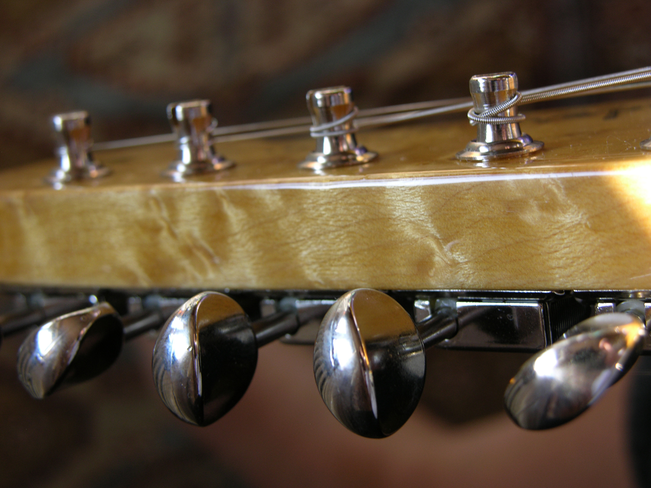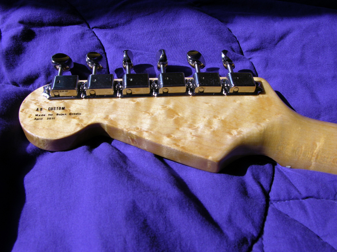 Completely missed this posting. What a smashing guitar. Looks great and sounds great. Can we have a picture showing the full guitar inc headstock, and one showing the back? Did you get the Callaham PAT PEND saddles?