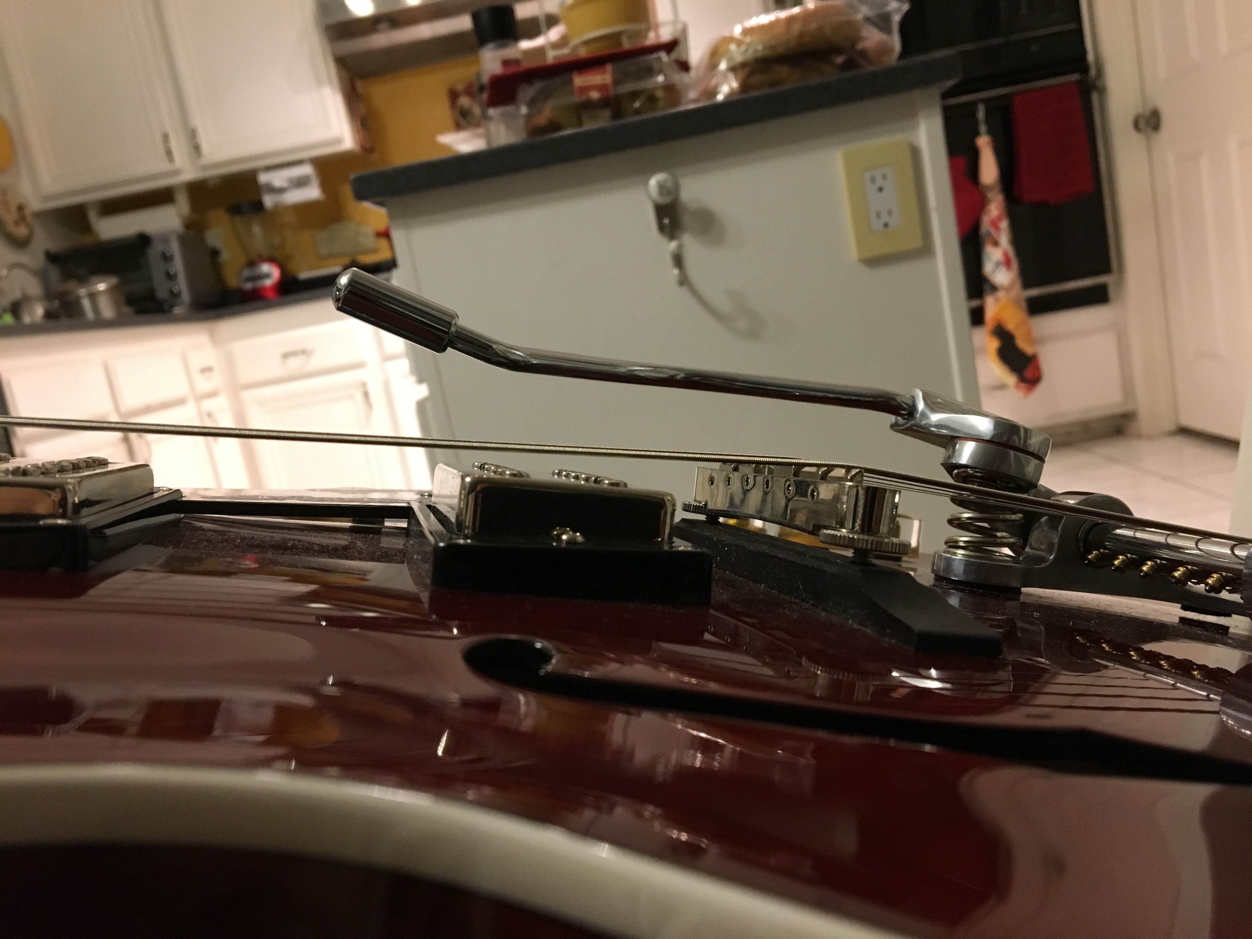 I just finished installing my Chet Atkins tremolo arm and it's just a tiny bit too low even though I added a coin