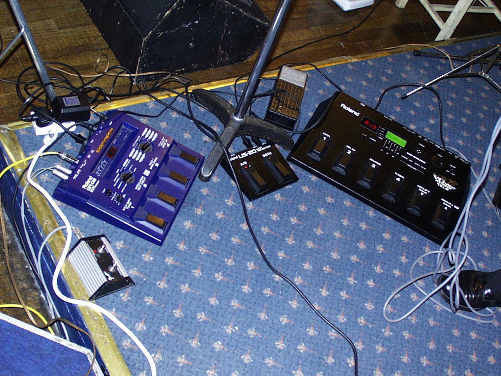 On the left is the blue Roland GR09 guitar synthesiser pedal and on the right is the Roland VG8-EX virtual guitar pedal.(i.e. modelled guitar)