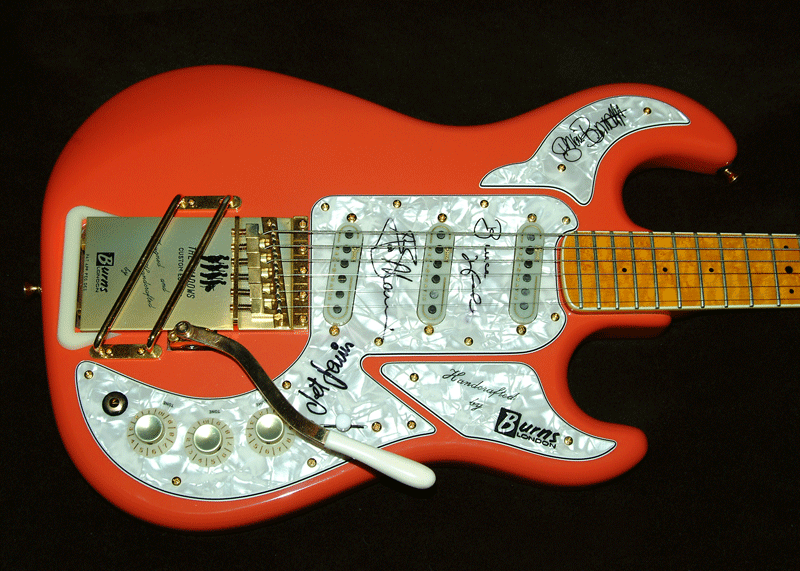 Hi all Burns people! I hope some one can help. I have this Burns Custom Deluxe Shadows Elite guitar. It is Fiesta Red with white pearl 3ply scratch plate and gold hardwear.The body is 1/8th of an inch thinner than the 40th anniversary Marvin.