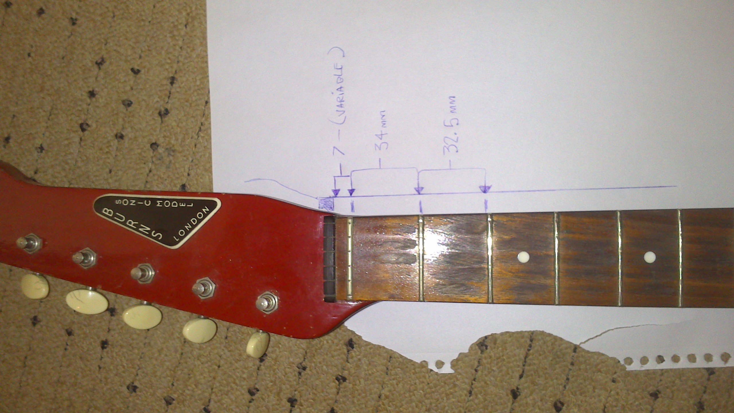 *reprofiled neck & blended in poorly replaced fret one as best I could, recut to 33.2 or 34mm cant remember - it tunes up nice now! - *if* it reaaallllyyy needs it later on I am going to look into getting the fretboard replaced, noone seems to want to build me one though! - dont fancy making one myself!