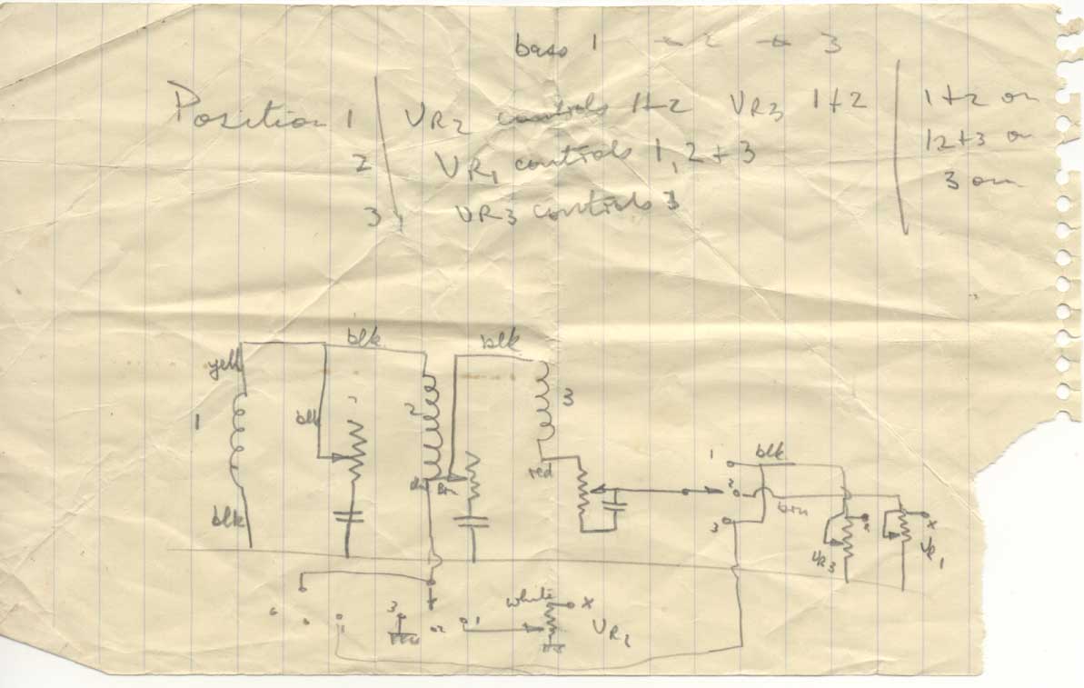 The closest I ever got was the picture below which my electronic friend drew up at the time I first took the pick guard off the Artist that you eventually bought off me. I've used this before on previous querries about the various combinations of sound these guitars produce.