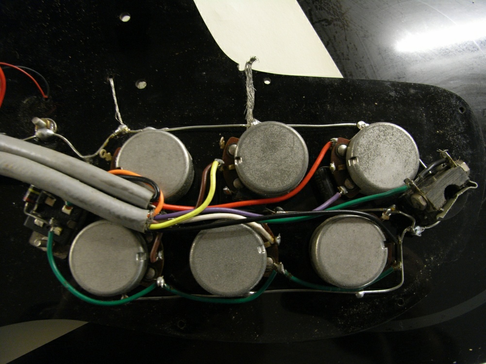 OK Dave, I'll sort some out later. Do we have an area for posting photos? I see there's one for video clips. Looks like a multi-core to me! Individual, insulated, colour-coded wires in a common sheath is definitely multi-core, even if they aren't individually screened like a front-of-house mixer/sound system - but let's not fall out over that! I can see that they have a common screen and would probably change that. Best that all signal wiring is screened right up to the switch or pot. I suppose they used what was available which gave them the colour coding. I have some of that cable somewhere and it isn't very flexible. Far better to use single or twin individually screened wiring and colour tag the ends. It's much more flexible in tight spaces. No screening/shielding on the scratchplate either - no wonder I used to receive the "Light Programme" at gigs in the early days!