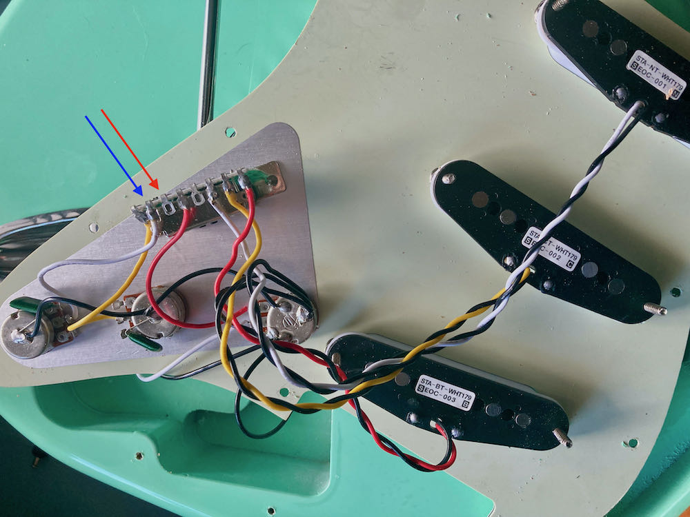 Neither of the tone pots (which worked on the neck and middle pickups, just like a Strat) was equipped with a push/pull switch.