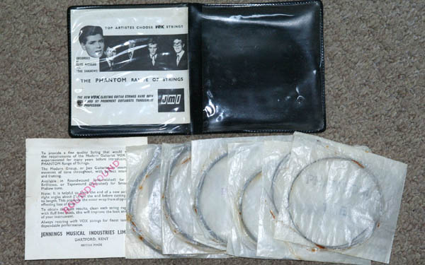 Now the Vox Phantom guitar first came out in 1962 so these would have been part of the matching accessories and the picture probably dates this pack to that year.