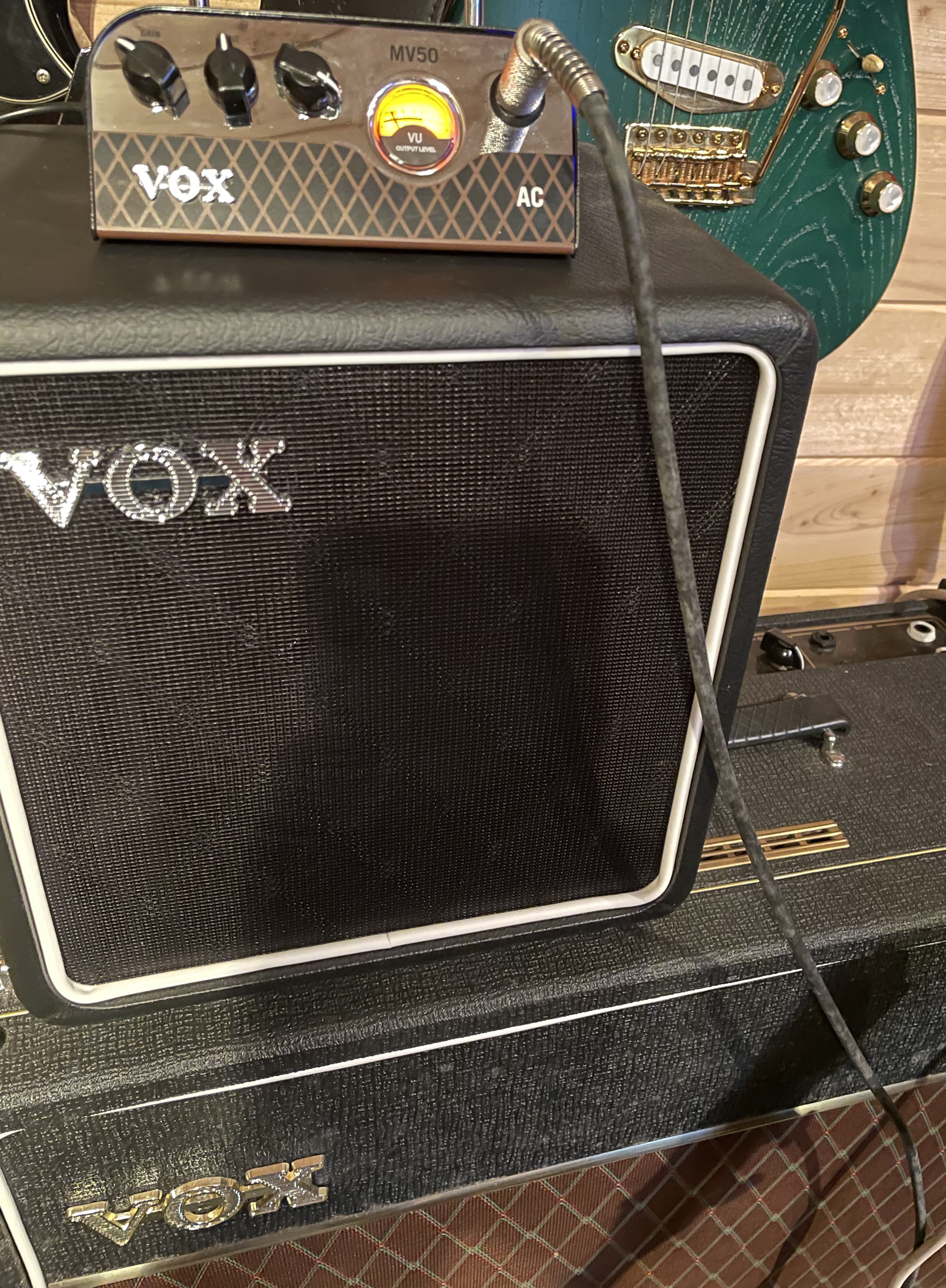 A pal has used the MV50 AC with the small Vox BC108 8" speaker and he says he gets the Shadows sound but I've gone for the 12" Celestion speaker which was in the AC30 amps.