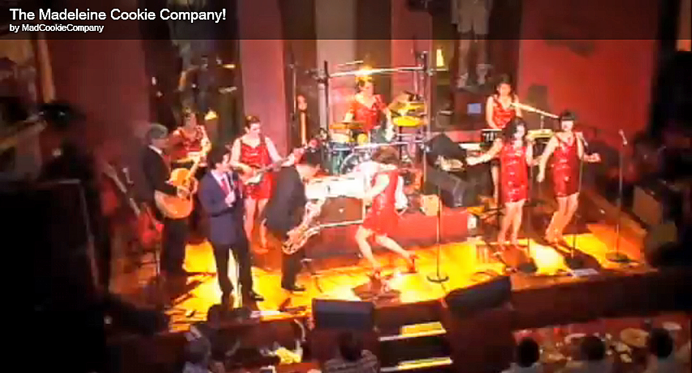 A friend sent this photo from a video, showing me with the Hofner, playing with the Madeleine Cookie Company. We're doing "Stupid Cupid" here - a lot of fun to perform!