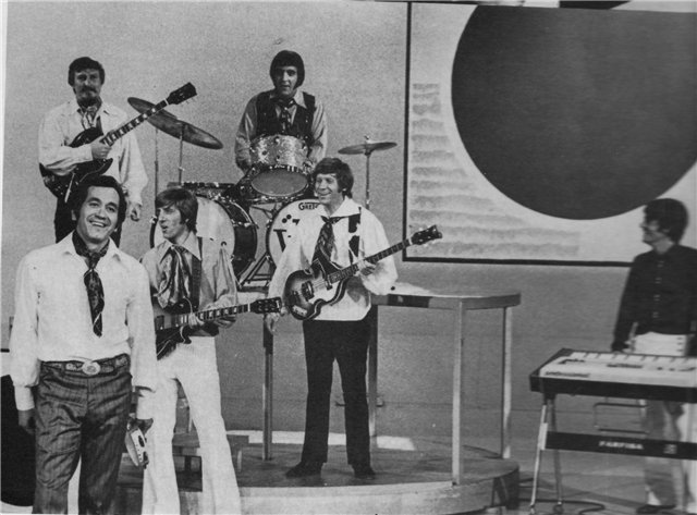 That is indeed Trini Lopez at the front - that photo, or a similar one, appeared on the sleeve of the Trini Lopez Show LP. Interesting lineup of guitars - Don Wilson with an SG, Gerry McGee with a Les Paul and Bob Bogle with the Hofner (matching guitar lineups were so uncool in those days...), Mel Tayor, of course, on drums and (I think) John Durrill on keyboard.
