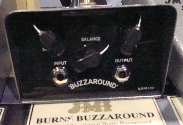 John's fuzz-unit was a stomp-box sold as the Burns Buzzaround. The circuitry was effectively the same as that inside the "Tone Bender" fuzz-box designed by Shadows fan Gary Hurst. The main difference between a normal Buzzaround and John's example was that instead of a "latching" footswitch, John had one with a non-latching switch. This meant that the fuzz sound was only engaged whilst the switch was depressed. Lifting the foot just once meant that the sound reverted to "clean", allowing those little riffs on Tennessee Waltz and Bombay Duck to be produced with half the usual number of foot operations.