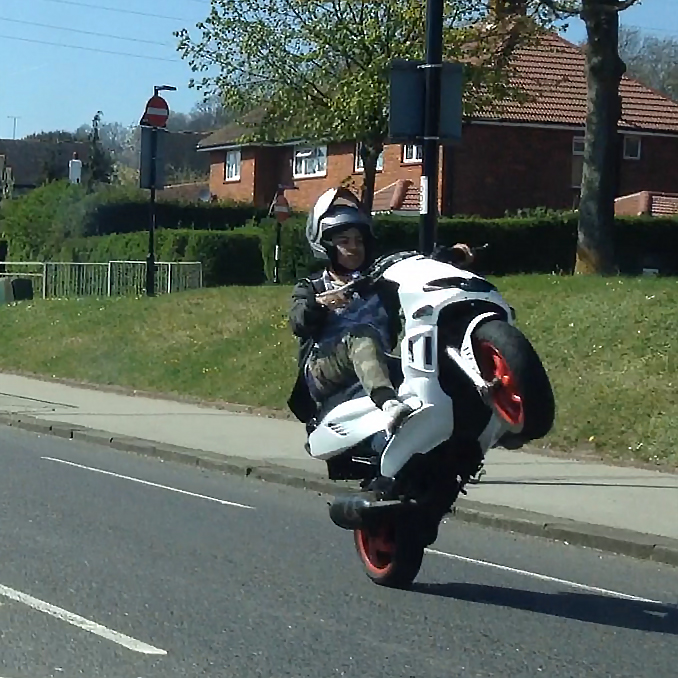 I just happened to have my iphone video on when this idiot wheelied by, our local police have been copied in!