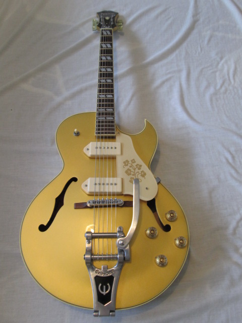 I used to have the original epiphone catalogue, that this was advertised in. As far as i can remember, this guitar was classed as a rock-a-billy box and not the Scotty Moore that people advertise them as now (Although he did play a Gibson version of this guitar in the '50's, without the vibrato).