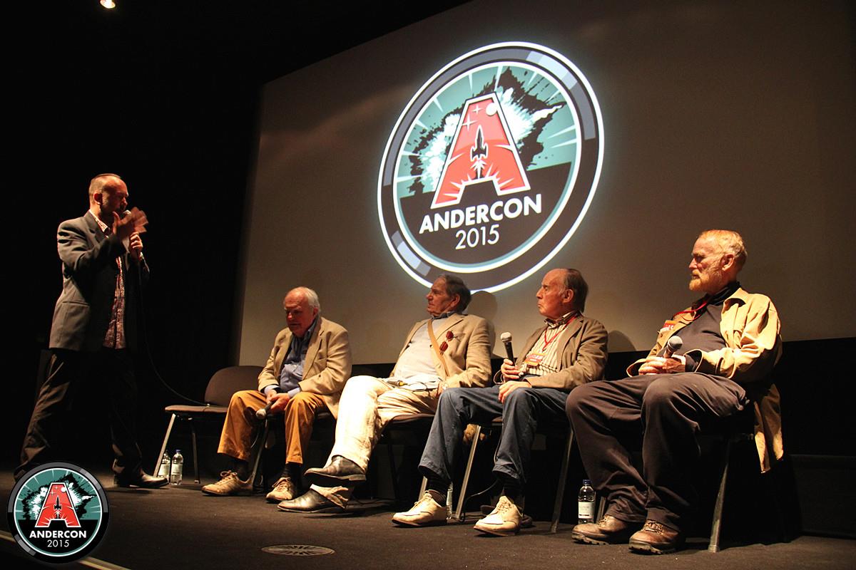 On the left, my good (?) self. Seated are four of the ORIGINAL actors who provided the voices for the characters in Thunderbirds.