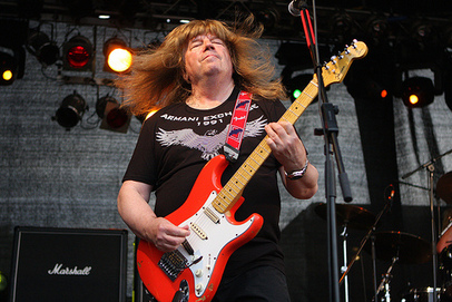 Not sure of the year (2000s I would guess), but nice to see Andy Scott with what certainly looks like a Hank-style Strat. Ever noticed how many guitarists use red and white Strats? I wonder if it's just coincidental...?