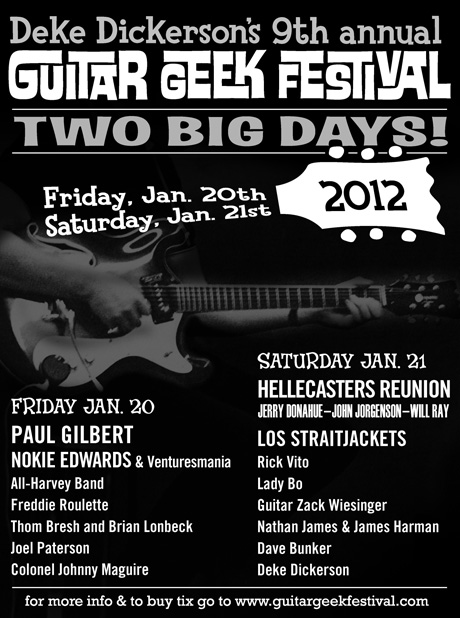 I understand that the next instalment of Deke Dickerson's Guitar Geeks Festival takes place at the Anaheim Plaza Hotel on the 20th and 21st of January 2012.
