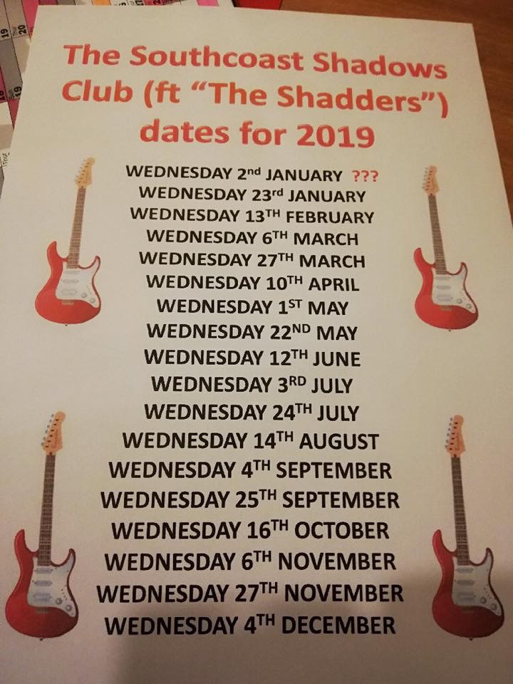 We are a small but friendly Club that started late 2003 - we have all the right Amps / Echos / Pedals and Backing Tracks - we play in a Musicians' Pub in Waterlooville every 3 weeks - we welcome everyone with the same interest in keeping the Shads music going!