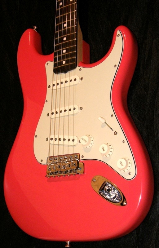 I've recently acquired a Custom Shop rosewood fingerboard Fiesta Red 1960 replica Strat fitted with over wound Fat 50's Abby pickups... and a mint green scratchplate...