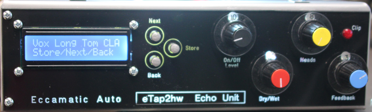 You can get 10 selections stored, combining any of the machines and any of the feedback patterns. It doesn't store the input level,echo amount or feedback amount, they can still be adjusted by turning the knobs. On program 5, POT 2 that was the feedback selector switch automatically becomes a potentiometer for head 4 and in fact, that's all it does in all programs, it doesn't have any other function anywhere other than Program 5.