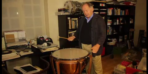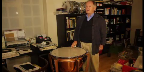 Which leads on to the other photos. Brian is seen here with the actual pedal-tympani as used in the Shadows and heard on 'Live at the Paris Olympia' LP. A real piece of history! He is seen talking about recording the theme to Countdown and being bitten by Alan's dog!