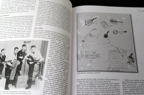 Page 11 of Mo Foster's British Rock Guitar book has a picture of Hank's schoolboy scrapbook, where he has doodled the instruments and personnel for his 'Riverside Skiffle Group'.