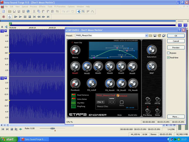 I feel that I should mention for those who don't know and that is these efx are applied to a 'dry' guitar recording (including the amp VST), thus being non destructive to the original when 'saved as' The advantage is of course that your perfect recording can be experimented with using whatever efx and settings takes your fancy within the host recording application without having to re-record.
