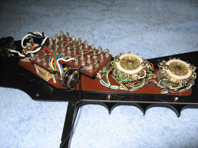 Unless it had an in-built active battery powered pre-amp (like say, a later Burns TR2), or adjustable output impedance with an inbuilt transformer (like the Gibson Les Paul models such as the Personal, Professional and Recording models) then its pickup output through a normal guitar amp would be far lower than normal high impedance electric guitar pickups?