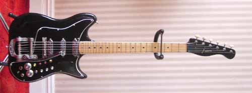 A letter written to me by Phil Storm (Chief Technician for Ormston Burns Ltd) in 1964 confirms it as "a very early design made about 1959". Note that it was fitted with a Bigsby tremolo from new (there are no screw holes that would have been left if the normal fixed bridge/tail had been replaced). Obviously one of Jim Burns' earliest "mass-produced one-offs" (Paul Day quoting Les Andrews).