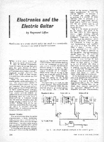 Electronics And The Electric Guitar' for 'The Radio Constructor' of November 1966 was, I believe the first-ever article published anywhere on the subject of electric guitar modification. Here's a sample of the first page: