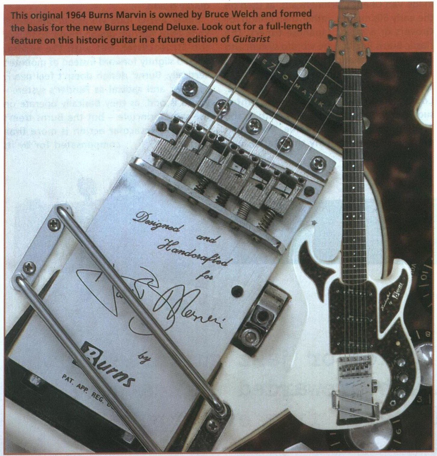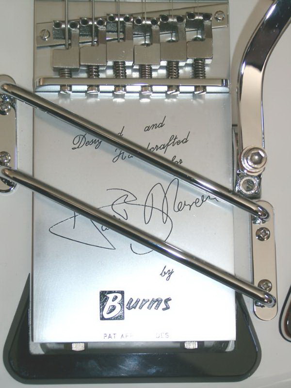 As a long term (since 1964) owner and player of Burns Marvin's I have to agree with Paul, I have always believed that the 'two bars' were a hand rest that also guarded against unwanted pitch changes due to external objects (mic stand etc or the player's wrist or whatever). As for hand position whilst playing, watch Hank in this clip of 'Bombay Duck' - and in any case, if it was only to restrict trem plate movement, why would Bruce bother to have one at all?