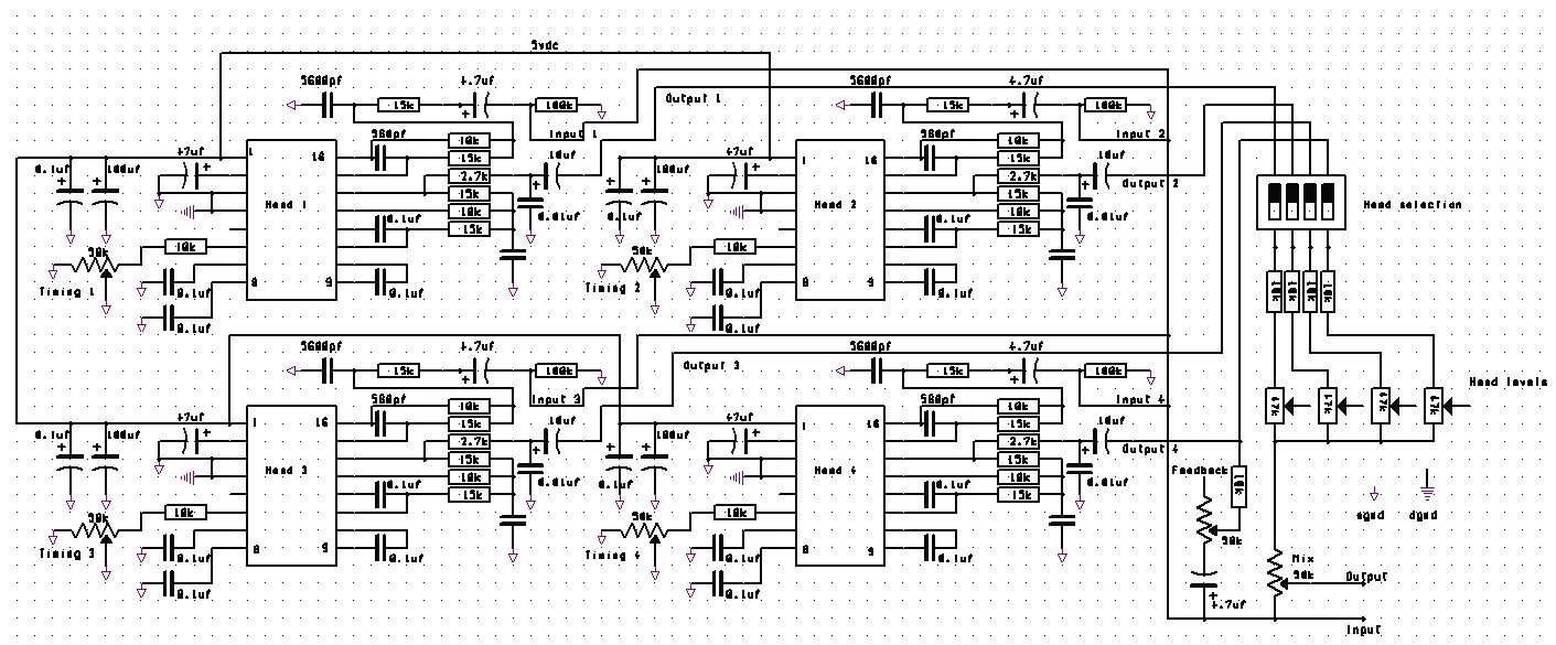 Each head can be switched out of circuit as it stands and bottom line is that the longer the delay, the noisier it gets.