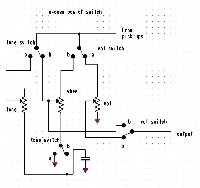 I'm wondering about the combined vol/tone setting. I can see how the tone variation works, but confused about the actual vol/level changes (if your wiring schem is correct as drawn, no offence).