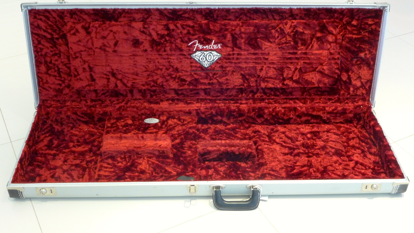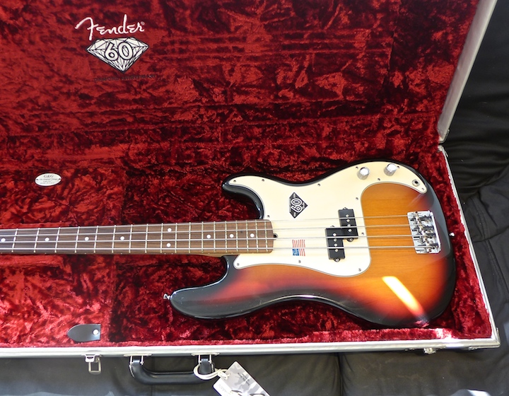 We have a 60th Anniversary Fender Precision Bass that we bought new some years back. It came in a silver-colorer case, which I suppose is intended to be similar to the diamond marking the anniversary. It is an attractive case and usually attracts the attention of musicians in gigs and shows.