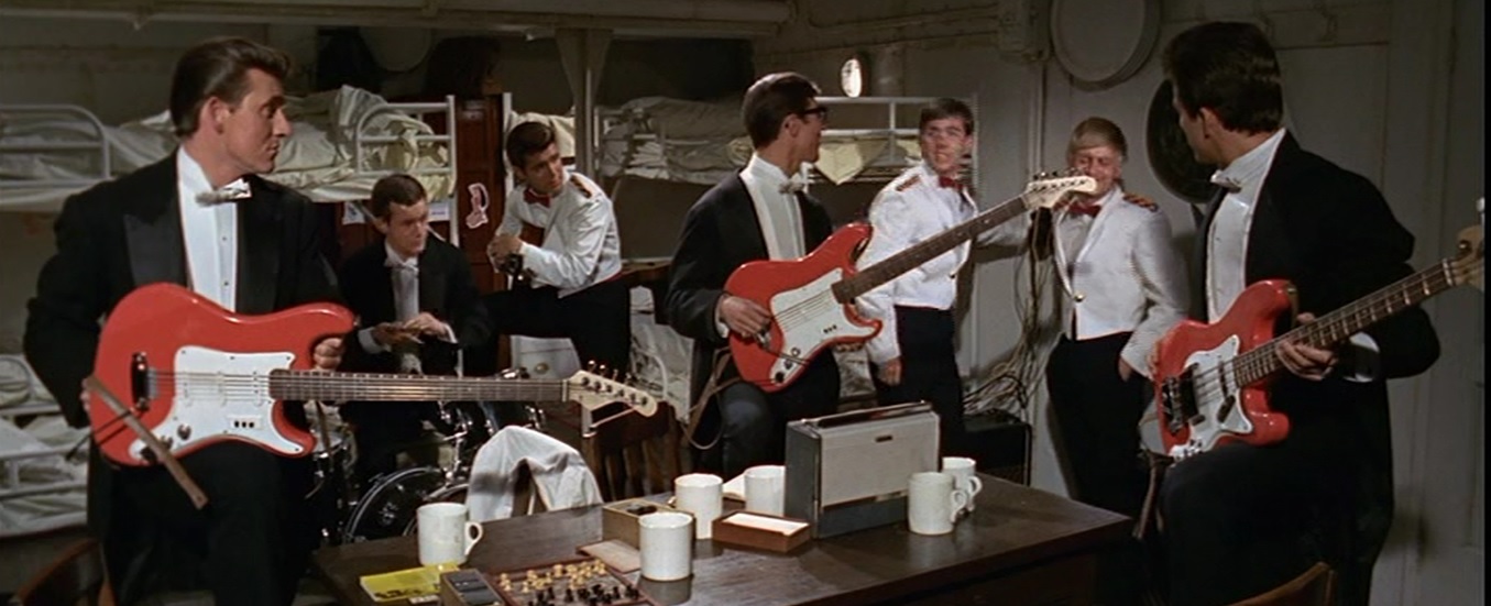 The Shadows weren't using red guitars at this time. Wonderful Life was made in the transition from white Fender to white Burns instruments. The numbers featured in the film were recorded in advance before Licorice left and certainly not on Vox guitars.