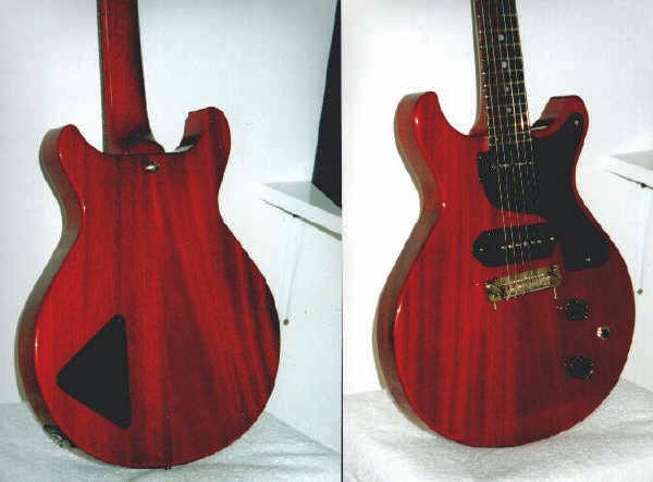 A few years ago, I bought one of those Gibson Les Paul Junior Specials (a 2-pickup guitar, like an original Special, but with the plainer appointments of the Junior), for £600+. It's finished in that faded cherry that Gibson now use on a lot of their cheaper range of instruments. James Jnr now has it, but I've always liked the thinner-bodied Gibson solids and have recently succumbed to the purchase (on eBay) of a Gibson SG Supreme (at a great price for a mint example, complete with Gibson tan case).