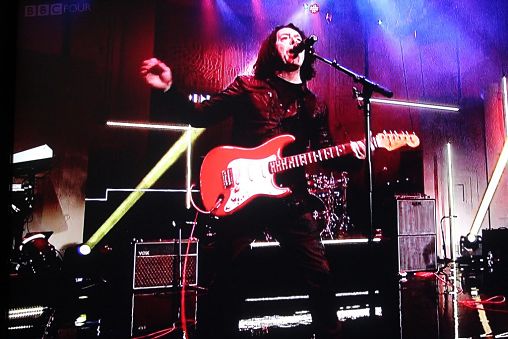 I watched a few minutes of Tears for Fears in concert on BBC 4 last night. I was pleasantly surprised to see Roland Orzabal playing a red Fender Stratocaster through a Vox AC30 amp! Now, given that the AC30 only came about in the first place because Hank asked Vox for something more powerful than an AC15, it was a double whammy... so to speak! I'd like to think that the guitar/amp combination was no coincidence. It may have been, but since Orzabal is 58 I think it's safe to assume that he was aware of the Shads and Hank when he was young. Anyway, here's a snap I took off the telly...