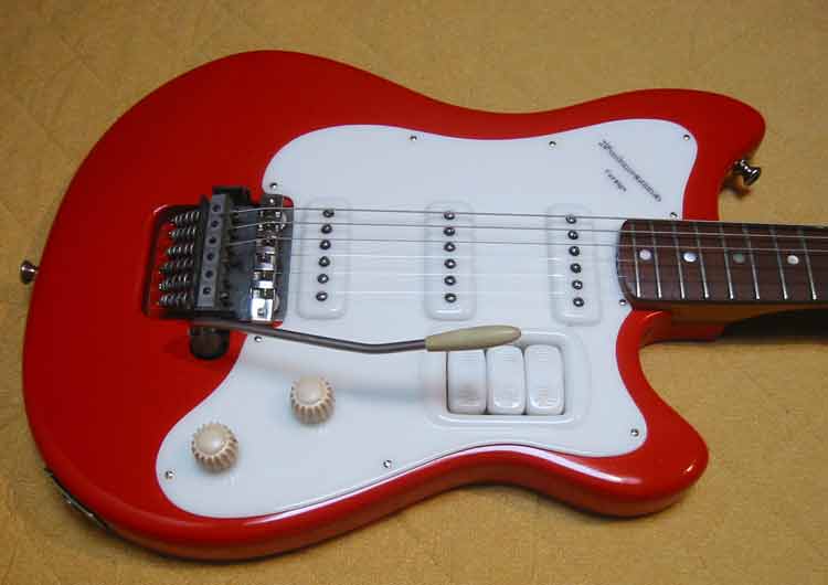 Hi Keith, I seem to remember that I had a red "Strat" style Futurama with a white pick guard around the 1963 period. It had a similar sort of shape to the Burns Vista Sonic (i.e., the upper cutaway was not very deep at all) and I have a vague idea it was three pick ups with white rocker switch pick up selections.