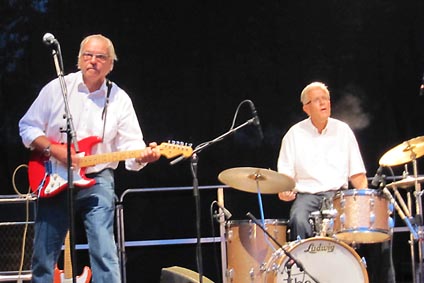 Just want to show you my new Stratocaster Custom Shop - a gift from my wife for my 60 years three weeks ago! It´s a Custom Classic American Series Strat - in Hot Rod Red (!) - instead of Fiesta Red. I have two already in that colour, so I wanted something else - and the Hot Rod Red is mighty! It has two Modern Classic Single Coils and one Hot Classic, a nice C-neck and the body is select alder. I ordered it and picked it up at Ludlow Guitars in NYC. Last saturday I used it for the first time at a gig in Sandvika in Norway. On the picture is also the drummer in The MoonCats, Per Brinchmann. His gold sparkle Ludwig drums are from the late 60´s.