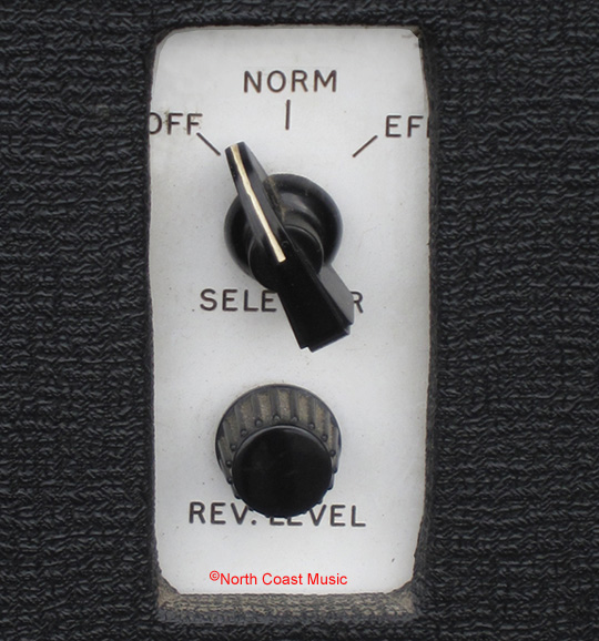 'The earlier addition of the Top Boost controls to the main control panel left no room to add reverb controls. The reverb controls were fitted into upper the back panel, as formerly done with the Top Boost controls. See photos at left.