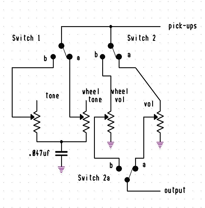 The vol switch selects either the existing pot or the new wheel pot.