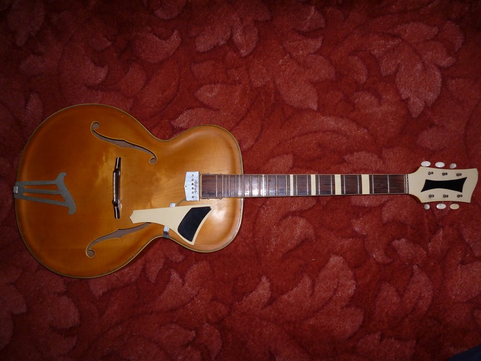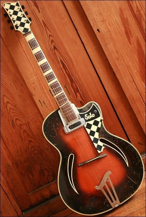 The neck looks like it's from another model altogether. The full width fret markers appeared on some Hofners in the early '50s and reappeared in the mid '60s. The headstock looks like it's off a President -- but reversed!