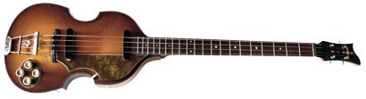 Possibly, before Jet, the earliest appearance of a bass guitar is the Hofner violin bass (c. 1956 pre-McCartney version) played by Fred Kirk in the original line-up of the John Barry Seven in early 1958...