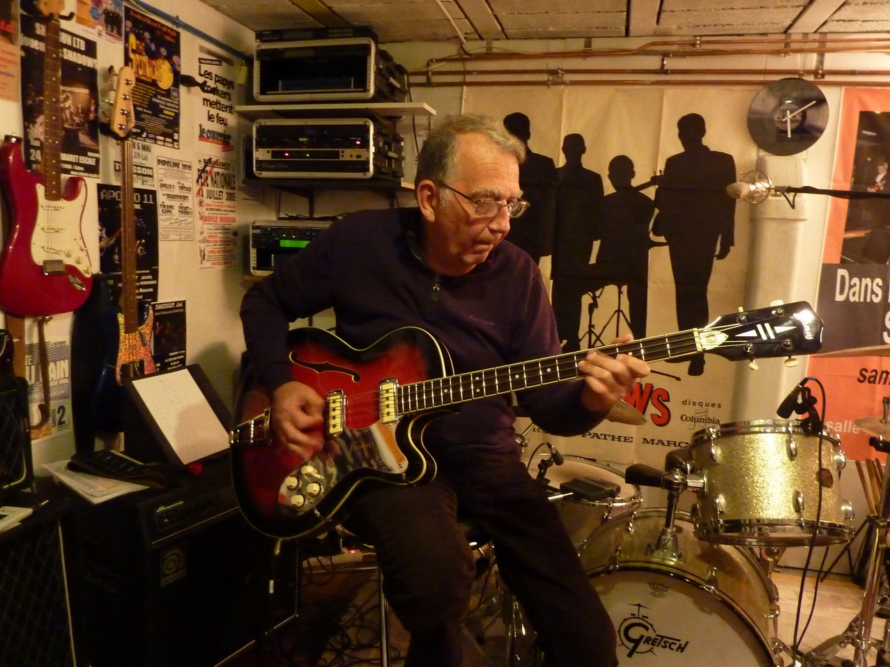 Bill nearly always used the home modified Dallas bass on the early recordings, he said he took the frets off to re-finish or paint the bass, but it sounded so good fretless that he didn't replace them.